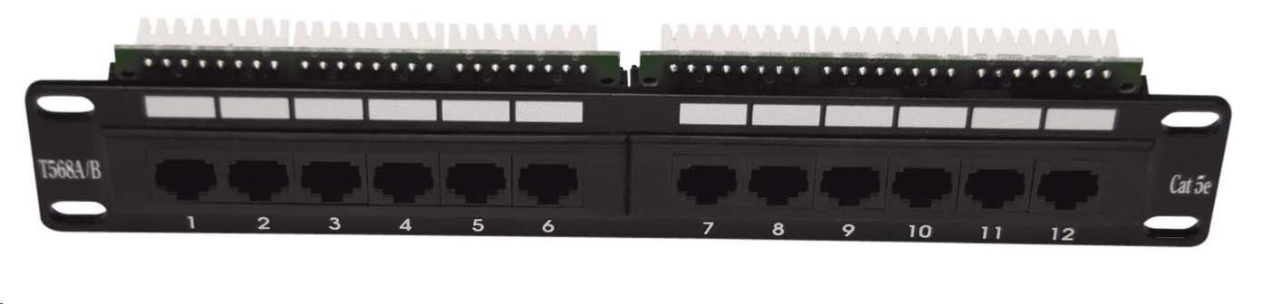 Patch panel 12 port Cat5E UTP pro 10" rozvaděče zářezové svorkovnice typu "DUAL" plřípadně s držákem možná montáž na zeď či atypického rozvaděče