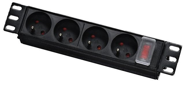 10" rozvodný panel LEXI-Net 4x230V, vypínač, indikátor napětí, kabel 1,8m, 1U