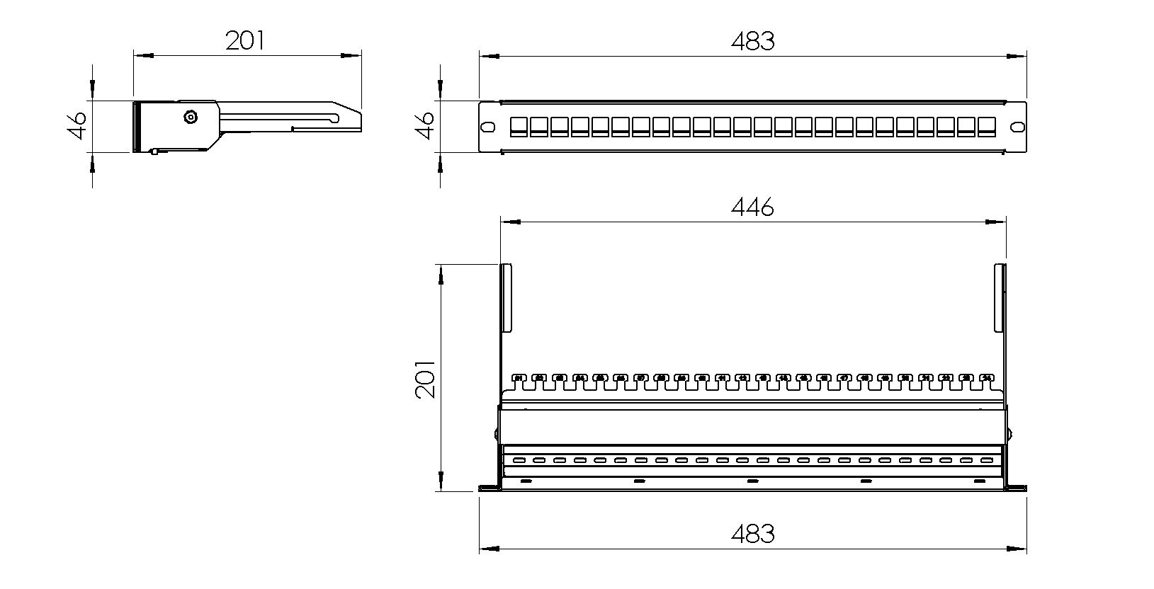 Neosazený 24 portový patch panel pro UTP/FTP, výsuvný