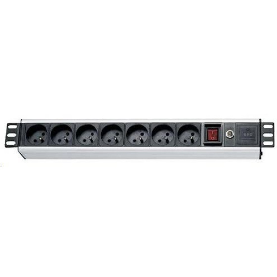19" rozvodný panel XtendLan 7x230V, ČSN, vypínač, indikátor napětí, přepěťová ochrana, proudová ochrana kabel 1,8m, výška 1,5U