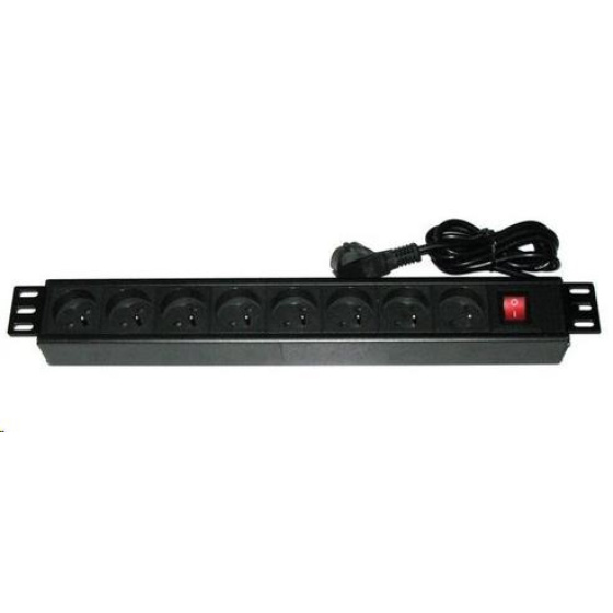 19" rozvodný panel XtendLan 8x230V, ČSN, vypínač, indikátor napětí, kabel 1,8m, výška 1,5U
