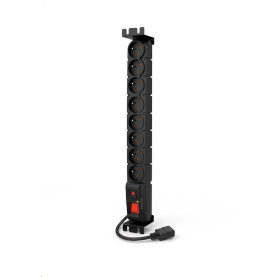 19" rozvodný panel ACAR 8x230V s IEC konektorem pro UPS, vypínač, indikátor napětí, přepěťová ochrana, kabel 1,5m