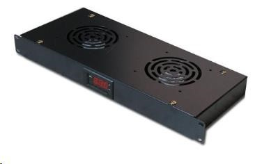 19" ventilační jednotka XtendLan, 2 ventilátory, LCD display, termostat, hloubka 200mm, černá