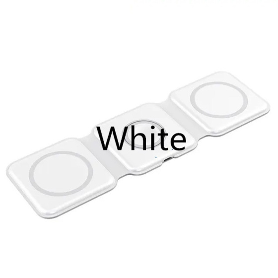 Kvalitní výkonná bezdrátová skládací 3 in 1 s podporou Apple MagSafe, iWatch, AirPods, ale i většiny telefonů, či příslušenství jiných značek podporujících bezdrátové QI nabíjení. Unikátní skládací řešení Vám umožňuje zvolit variantu použítí pouze jako podložku pro jedno zařízení, nebo stojánek případně nabíječku rozložit a nabíjet až tři zařízení. Nabíječku lze opět jednoduše složit do malé kompaktní podoby a v případě potřeby vložit do kapsy a jednoduše vzít kamkoli budete potřebovat.