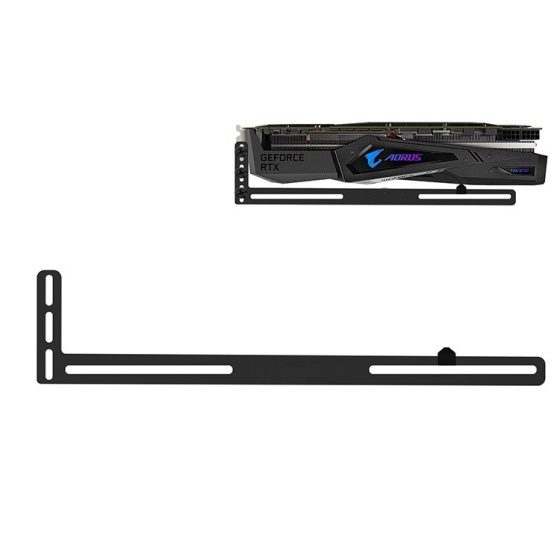Základní varianta této opory Vaší grafické karty je vyrobena z eloxovaného leteckého hliníku a zabraňuje prohýbání větších karet ve slotu a dodává tak sestavě lepší celkovou stabilitu. Součástí je silikonová posuvná opora ve dvou variantách, kterou lze posunout horizontálně a umožňuje instalaci v různých místech karty, pro maximální kompatibilitu s většinou karet. Rozměry držáku jsou 280 x 62mm.