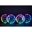 součástí výbavy je SET ventilátorů s adresovatelnými RGB LED diodami skládá se z 4*120mm RAINBOW (duhový) ARGB fan s možností propojení s Vaší základní deskou pomocí 3pin aRGB konektoru + nano/reset řadič (kompatipilní se systémy ASUS Aura Sync, MSI Mystic Light, GIGABYTE RGB Fusion i ASRock Polychrome Sync).