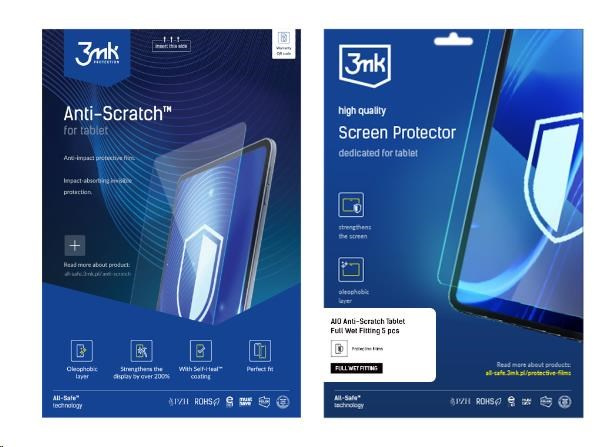 Popis 3mk All-Safe - AIO fólie Anti-Scratch Full Wet Fitting Tablet, 5 ks