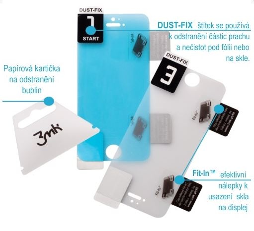 • Sada obsahuje: FlexibleGlass, kartičku na rozetření bublin, polohovací samolepky Fit-In™ a samolepky Dust-Fix™, čistící a suchý hadřík.