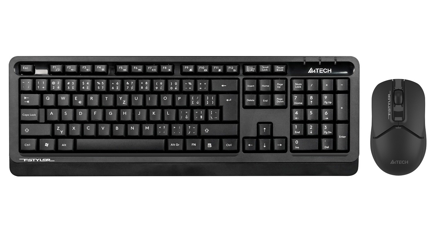 Popis A4tech Bezdrátový kancelářský set klávesnice+myš FG1012S, CZ/SK, černá