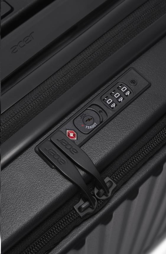 Popis ACER Barcelona luggage 20", černý, pevný cestovní kufr, materiál: 100% recyklovaný PET, TSA kombinační zámek