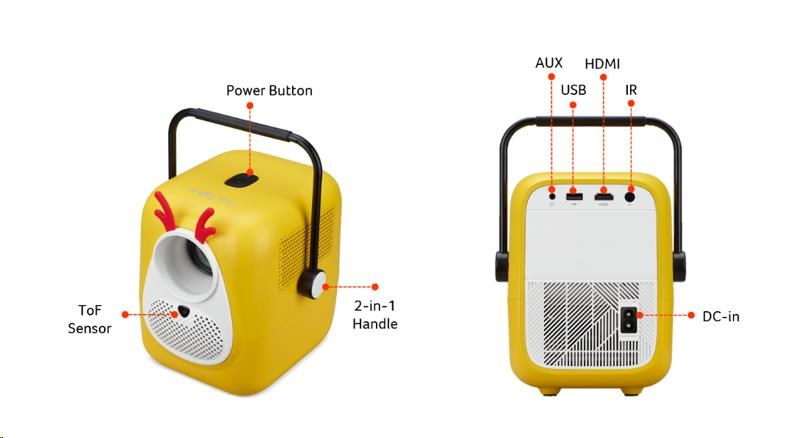 Skutečné rozlišení projektoru:HD 1080 (1920x1080); Technologie:LCD; Kontrast (hodnota : 1):1000; Svítivost (v ANSI lumenech):200; Rozhraní:HDMI, USB; Funkce:Reproduktory.Více