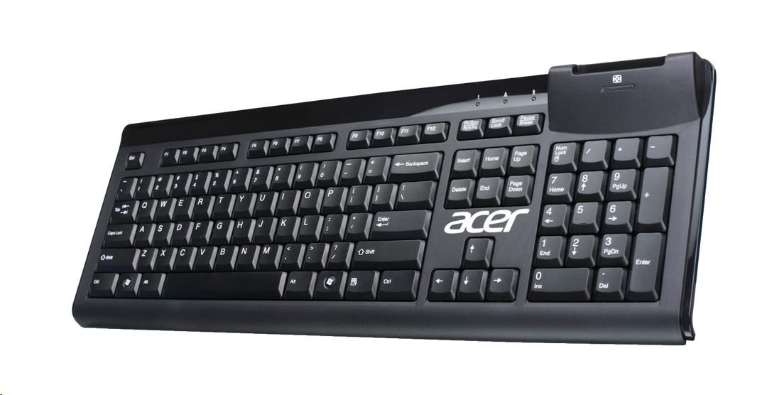 Popis ACER Wired Smart Card reader Keyboard, drátová, USB2.0, čtečka chytrých karet, Black, Membrane Switch, CZ/SK layout