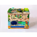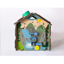 Domeček activity board - Safari je složen ze šesti desek s hracími a montessori prvky zaměřenými na zručnost, logiku, kreativitu a trpělivost. Domeček vtáhne děti do světa objevování a fantazie, kde si děti samy hrají a učí se tím nejpřirozenějším způsobem, pomocí hry.