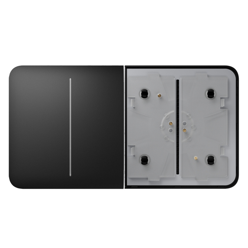 Kombinovaný vypínač se skládá ze 2, 3, 4 nebo 5 relé, dotykových tlačítek a rámečku s odpovídajícím počtem otvorů. Místo vypínače lze použít i inteligentní zásuvku Ajax