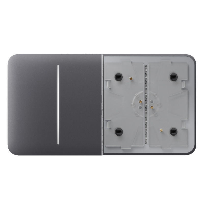 Kombinovaný vypínač se skládá ze 2, 3, 4 nebo 5 relé, dotykových tlačítek a rámečku s odpovídajícím počtem otvorů. Místo vypínače lze použít i inteligentní zásuvku Ajax