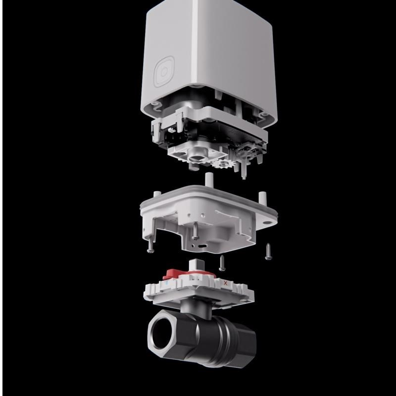Instalatér může nainstalovat standardní kompatibilní uzavírací ventil bez instalačního technika. Stačí mu jen znát rozměry elektrického ventilu. Instalační technik tak může přijít v jiný den, nainstalovat elektrický pohon a integrovat jej do zabezpečovacího systému Ajax.