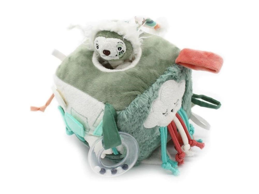 Přestože je lenochod zvířátko, které se pomalu pohybuje a většinu dne prospí, tak tato aktivity kostka lenochod rozhodně vaše miminko lenošit nenechá. Originální prvky v podobě chrastítka, zrcátka, suchých zipů, šustících hodin, tvarů na suchý zip, s provázky, s různými materiály, s kapsičkou a se schovaným lenochodem motivují miminko k pohybu, k prozkoumání, objevování, mačkání, ochutnávání. Při hře se zábavnými prvky na aktivity kostce děti stimulují své smysly, zdokonalují jemnou motoriku i koordinaci očí a rukou. Prohlédněte si tuto úžasně heboučkou kostku s aktivitami, která je skvělým dárkem pro děti již od narození.