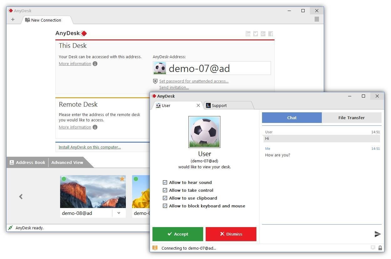 Poskytování efektivní podpory všem zaměstnancům nebo zákazníkům znamená, že klíčová je flexibilita. Bez ohledu na to, kde se vaši uživatelé nacházejí a jaké operační systémy používají, AnyDesk vám umožní se k nim bezpečně a stabilně připojit a efektivně vyřešit jakýkoli problém.