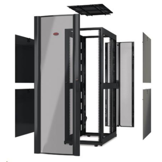 Vysoká a široká skříň s prostorem 48U pro přídavná zařízení a s možnostmi rozšířené správy kabelů pro servery s vysokou hustotou napájení a síťové komponenty.