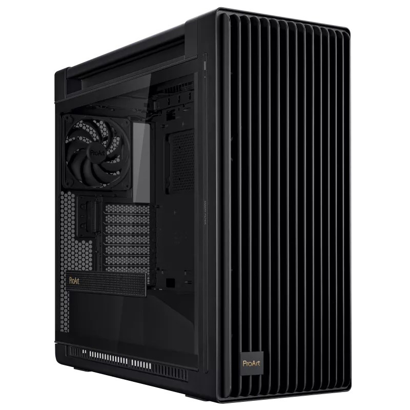 Počítačová skříň ProArt PA602 E-ATX, podpěra chladiče 420 mm, jeden 140 mm a dva 200 mm předinstalované systémové ventilátory, IR indikátor prachu na předním panelu, západka zámku napájení, montáž PCIe bez použití nářadí, podpora USB 20 Gb/s
