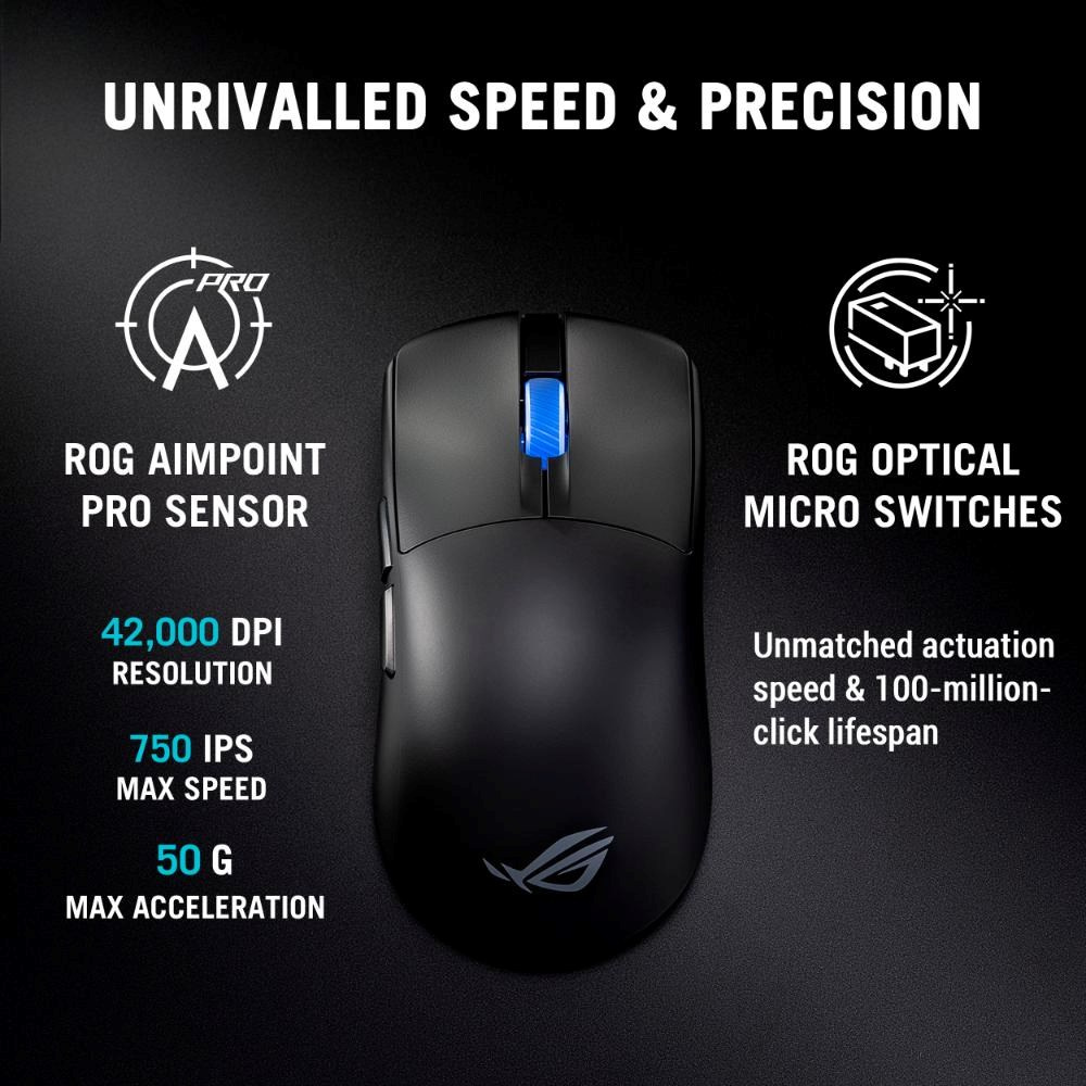ROG Harpe II Ace je ultralehká 48gramová polosymetrická herní myš, jejíž tvar byl vyvinut s pomocí profesionálů v oblasti esportu. Je vybavena řadou profesionálně schválených technologií, včetně optického senzoru ROG AimPoint Pro s rozlišením 42 000 dpi, optických mikrospínačů ROG a špičkového bezdrátového výkonu s frekvencí 8 000 Hz a bezdrátovou technologií SpeedNova 8K.