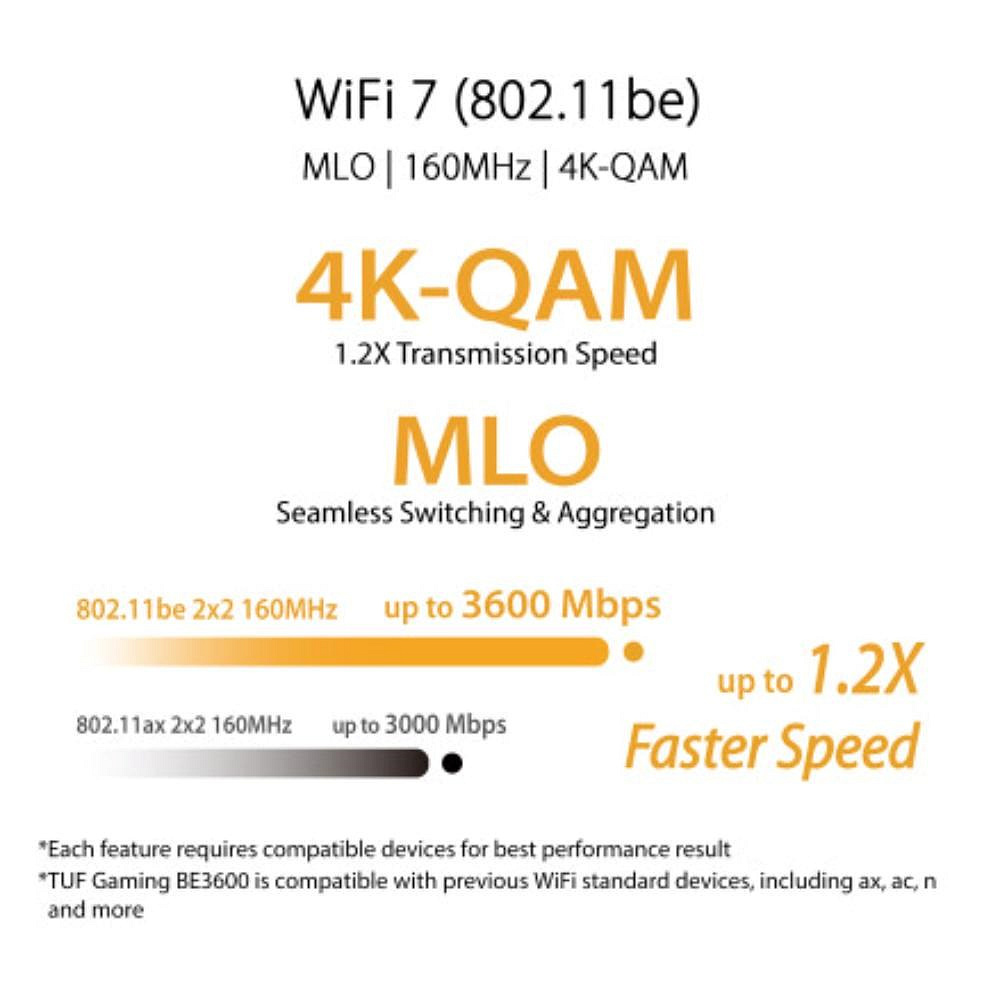 | WiFi | WiFi 7 (802.11be) (5GHz): up to 2882 Mbps WiFi 7 (802.11be) (2.4GHz): up to 688 Mbps WiFi 6 (802.11ax) (5GHz) : up to 2402 Mbps |