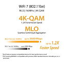 | Boosts Speed | OFDMA (Orthogonal Frequency Division Multiple Access) Beamforming: standard-based and universal 4096-QAM high data rate 20/40/80/160 MHz bandwidth |