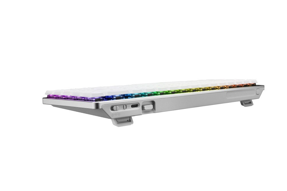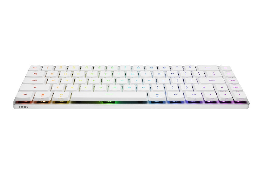 ROG Falchion RX Low Profile 65% kompaktní bezdrátová herní klávesnice s nízkoprofilovými optickými spínači ROG RX, třírežimové připojení s bezdrátovou technologií ROG SpeedNova a přijímač Omni, ochranný kryt, integrovaná silikonová tlumící pěna, interaktivní dotykový panel a podpora MacOS