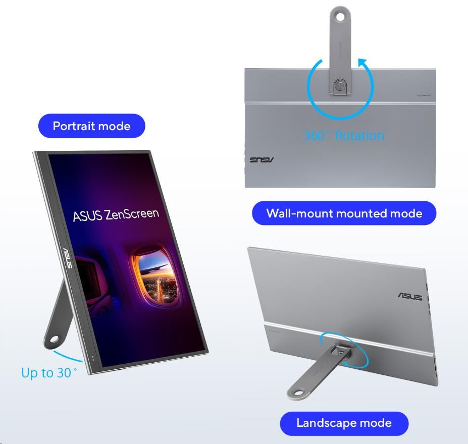 ASUS ZenScreen OLED MQ16AHE portable monitor – 16" (15.6 ") FHD (1920 x 1080), OLED, 100% DCI-P3, 1 ms Response Time, HDR-10, USB Type-C, Mini HDMI , Proximity Sensor, 360° kickstand, Flicker Free, Low Blue Light