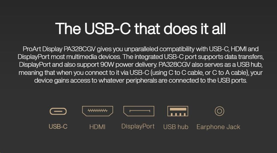 ASUS LCD 32" PA328CGV 2560x1440 ProArt DP HDMI USB-C-VIDEO+90W VESA 100x100 PIVOT 100% sRGB/Rec.709, Color Accuracy