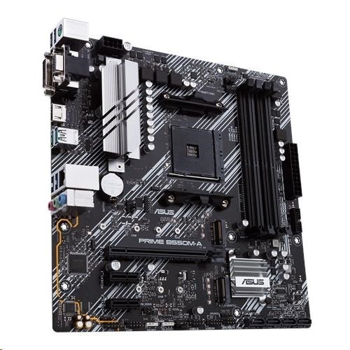 AMD B550 (Ryzen AM4) micro ATX motherboard with dual M.2, PCIe 4.0, 1 Gb Ethernet, HDMI/D-Sub/DVI, SATA 6 Gbps, USB 3.2 Gen 2 Type-A, and Aura Sync RGB headers support