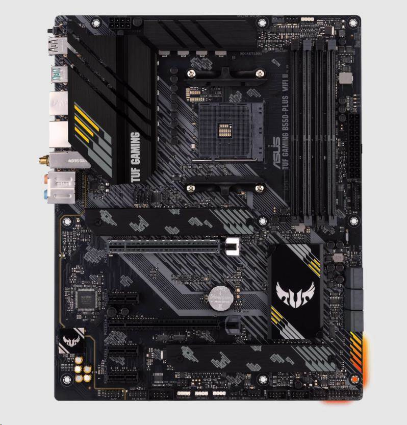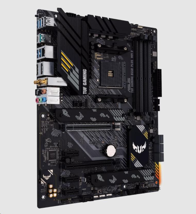 AMD B550 (Ryzen AM4) ATX gaming motherboard with PCIe 4.0, dual M.2, 10 DrMOS power stages, Wi-Fi 6, 2.5 Gb Ethernet, HDMI, DisplayPort, SATA 6 Gbps, USB 3.2 Gen 2 Type-A and Type-C, Thunderbolt™ 3 header, and Aura Sync RGB lighting support