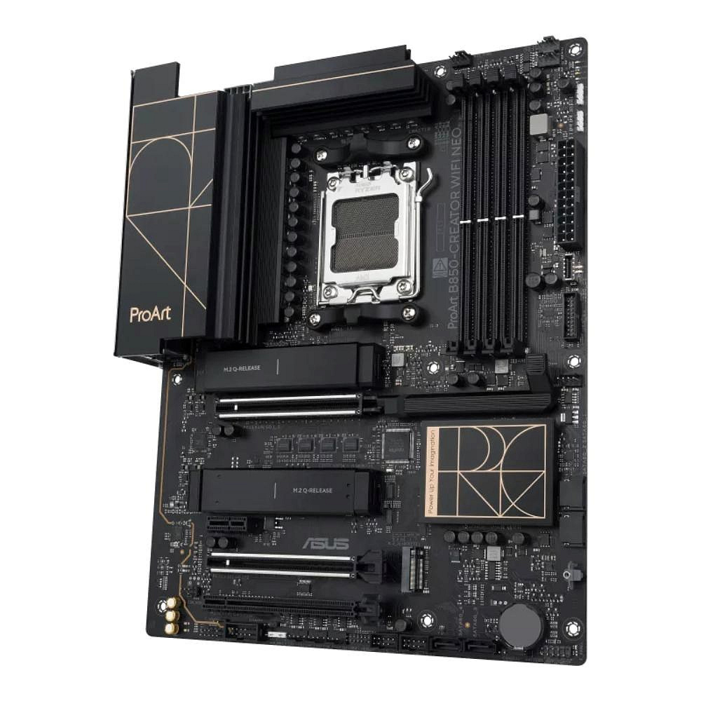 The ProArt B850-Creator WiFi Neo is designed to empower creators at every level, delivering optimized performance for the latest AMD Ryzen™ 9000, 8000, and 7000 Series processors, as well as AMD EPYC™ 4005 Series CPUs. Featuring a robust 14+2+1 power stage design, DDR5 support, PCIe® 5.0 expansion, and ultrafast connectivity—including dual 5G Ethernet and WiFi 7—it provides a reliable foundation for demanding creative workloads.