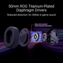 Herní sluchátka se třemi režimy RGB s bezdrátovou technologií ROG SpeedNova, 50mm ROG titanem pokovené membránové měniče, vylepšený bezdrátový zvukový podpis, 10mm super širokopásmový raménkový mikrofon, lehký design 309 g a navíc osvětlení ASUS Aura Sync RGB