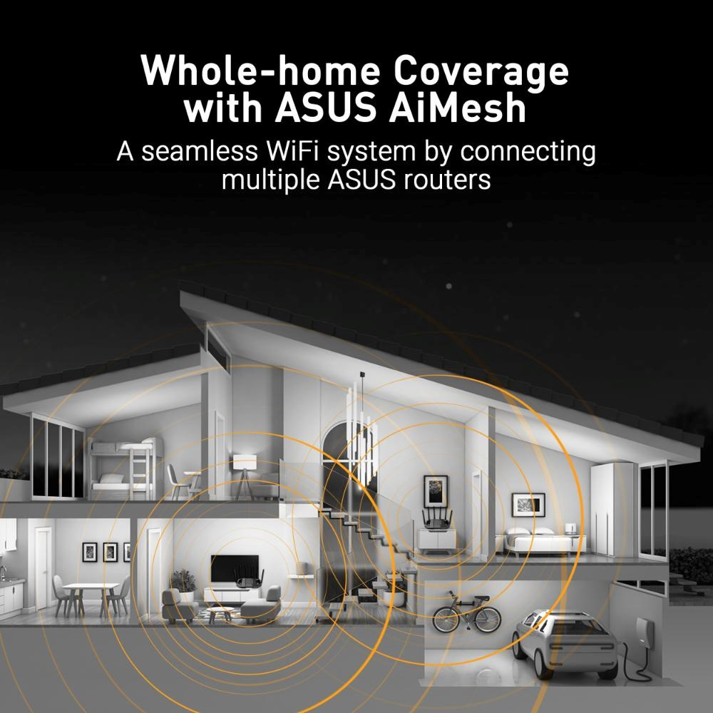 Rozšiřitelný herní router ASUS TUF Gaming BE6500 Dual Band WiFi 7 (802.11be), Quad 2,5GbE porty, 3-krokové přesměrování portů, Smart Home Master, podpora AiMesh a AiProtection Pro pro zabezpečení sítě
