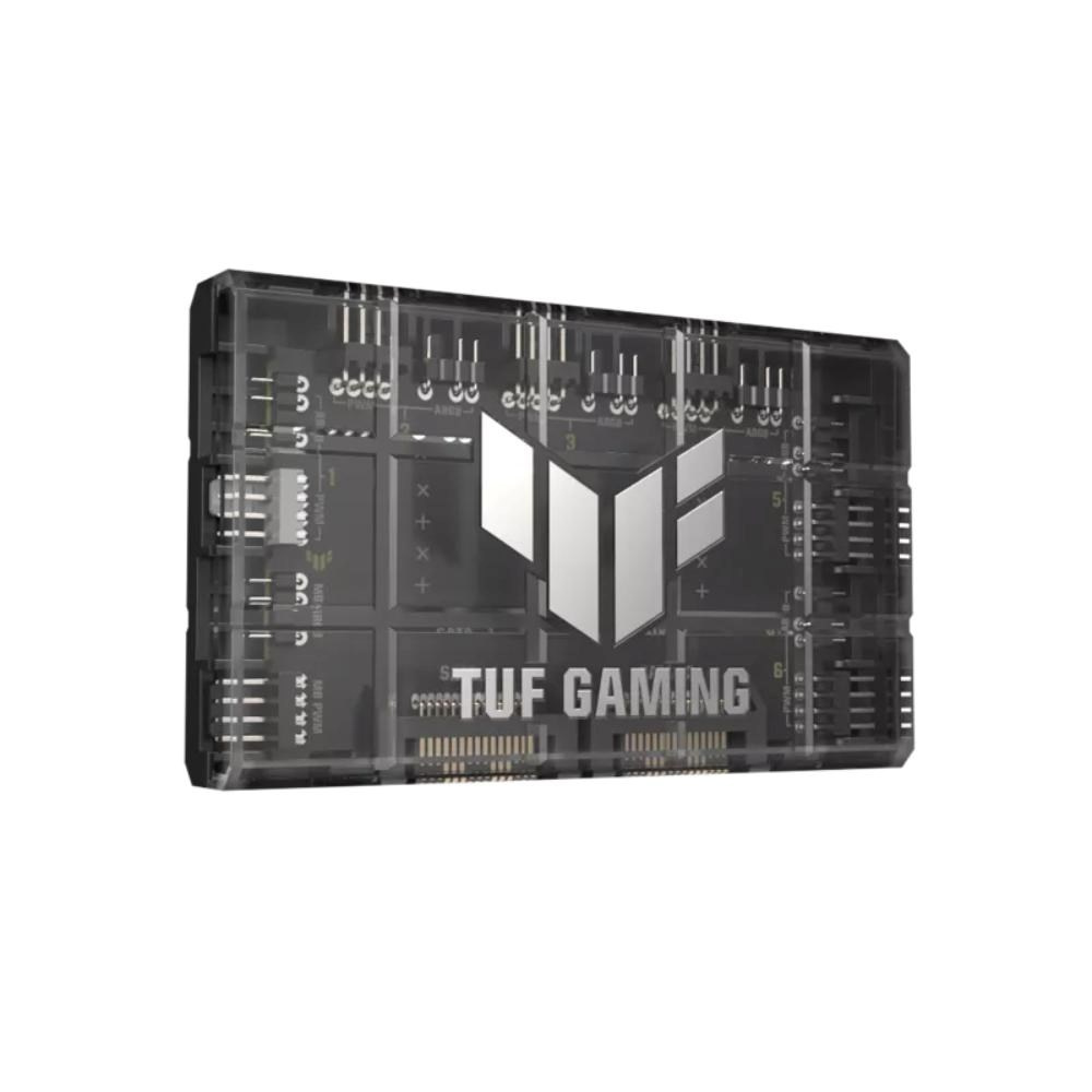 Rozbočovač ventilátorů TUF Gaming ARGB PWM připojuje až šest ventilátorů skříně pro ovládání PWM a ARGB, čímž plynule synchronizuje chlazení a světelné efekty.