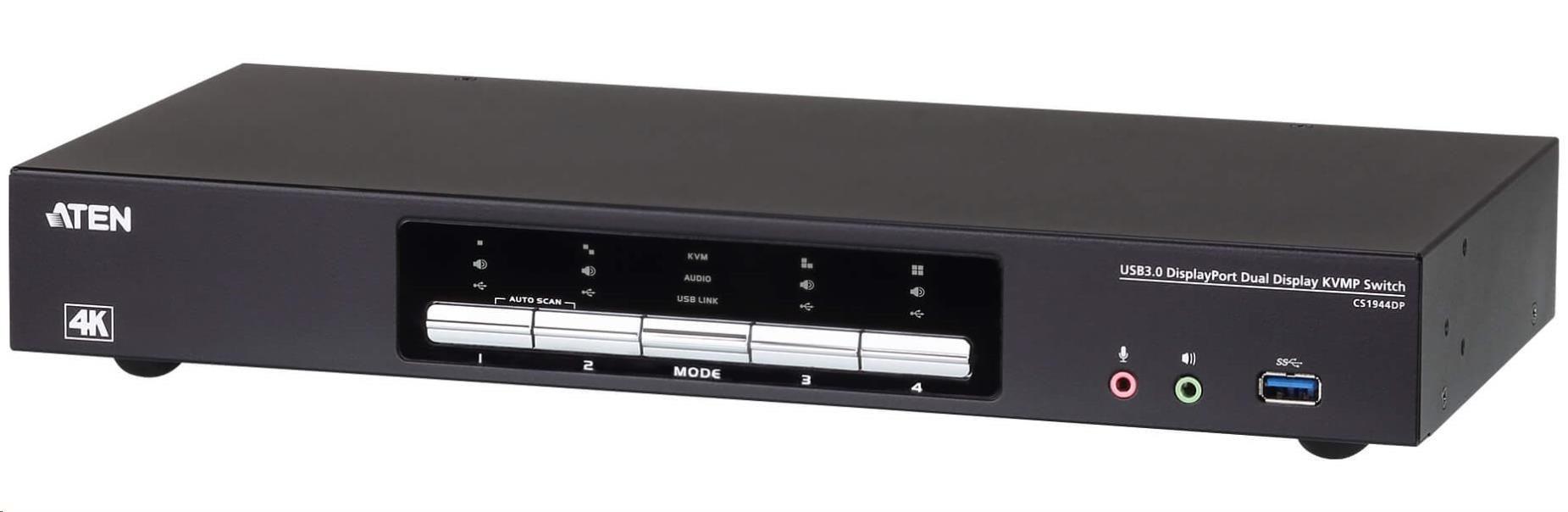 Popis ATEN 4-port USB3.0 4K DisplayPort Dual Display KVMP
