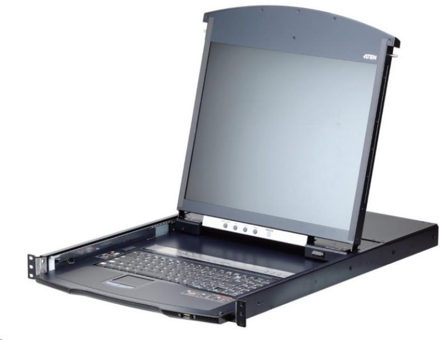 Popis ATEN 8-port Cat.5 KVM PS/2+USB, OSD, dual rail rack, 19" LED LCD, ovládání over IP 1local/1remote