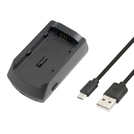 Nabíječka s Micro-USB vstupem pro baterie do fotoaparátů a videokamer. Pro akumulátor: PANASONIC: CGA-E/625, VW-VBG070, VW-VBG6, VW-VBG6-K, VW-VBG6PPK, VW-VBG130, VW-VBG260 Obsah balení: návod, nabíjecí základna, nabíjecí redukce, kabel..