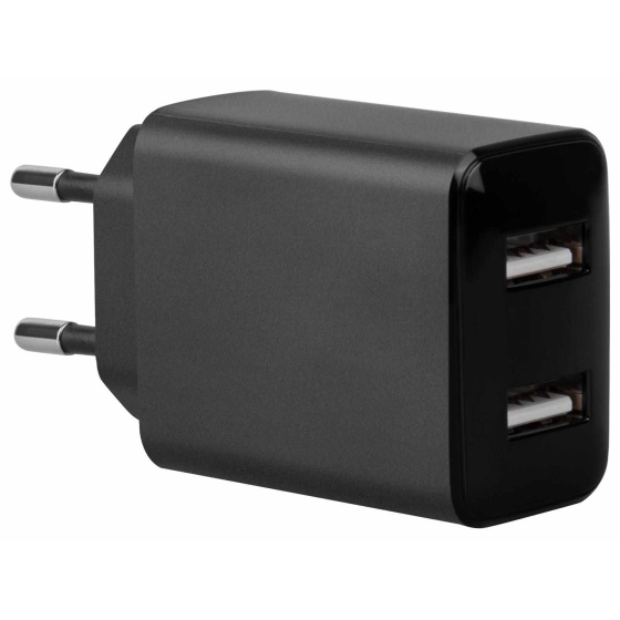 Univerzální síťová nabíječka, 2x USB výstup pro nabíjení smartphonů, tabletů a dalších zařízení.