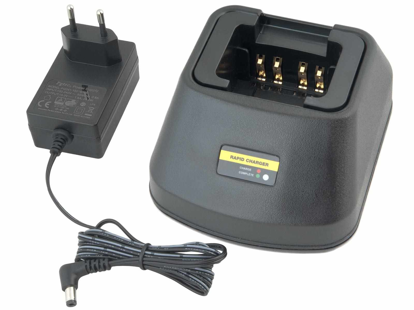 Kompletní nabíječ s redukcí pro nabíjení Ni-MH a Li-ion baterií PMNN4065, PMNN4066 pro radiostanice Motorola DP3400, DP3401, DP3600, DP3601, TRBO XPR6100, TRBO XPR6300, TRBO XPR6350, TRBO XPR6380, TRBO XPR6500, TRBO XPR6550, TRBO XPR6580.
