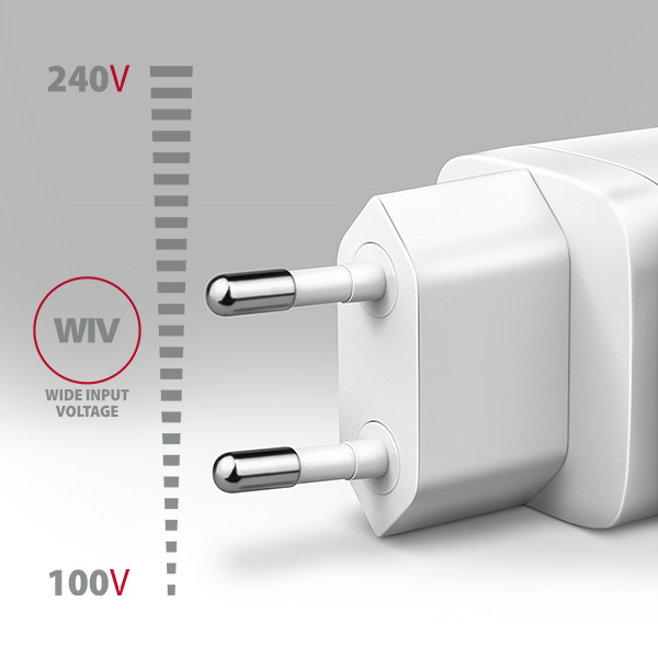 • Wide Input Voltage - funkce širokého rozsahu vstupního napětí, chrání adaptér proti podpětí a přepětí na vstupu a umožní použití více "národních napájecích standardů".