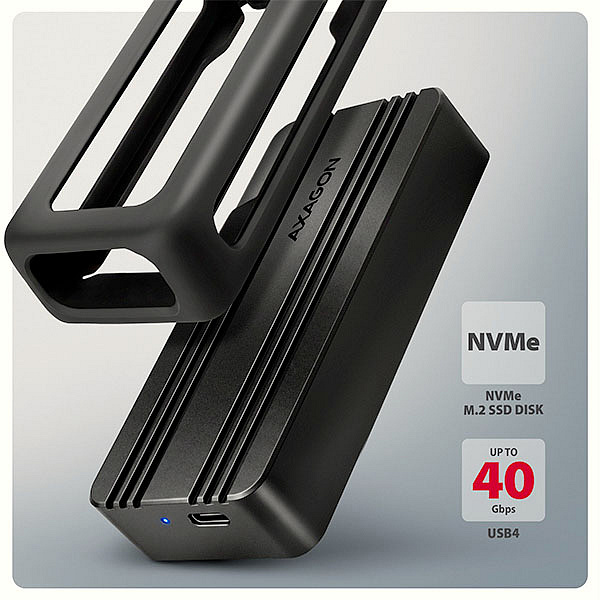 Box je určen pro M.2 NVMe SSD disky. Podporuje formáty 2230, 2242, 2260 a 2280 mm v jednostranném i oboustranném provedení, bez omezení kapacity (včetně disků s kapacitou 4 TB a vyšší). Podpora UASP napomáhá efektivnějšímu přenosu dat, zatímco funkce TRIM pomáhá udržet výkon SSD disku v průběhu času. Možnost čtení S.M.A.R.T. informací pak umožňuje sledovat stav disku.