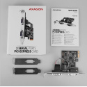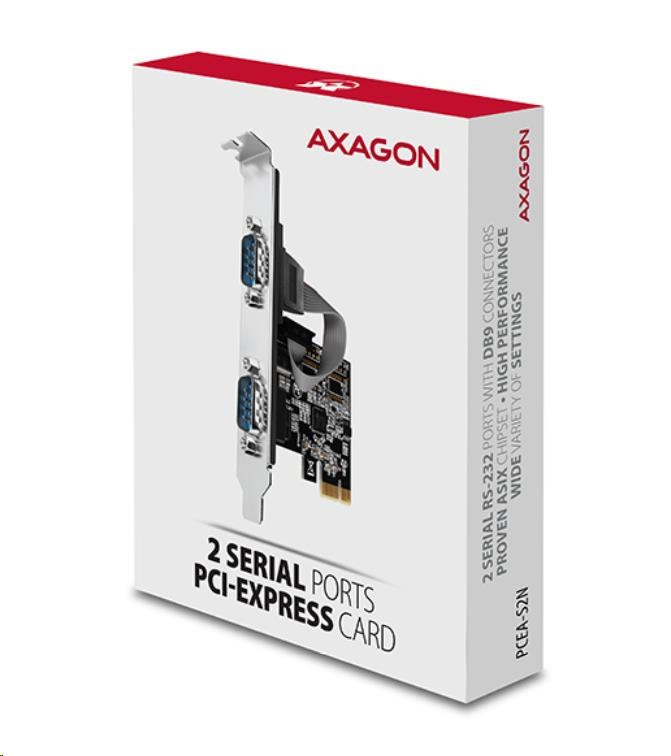 PCI-Express karta AXAGON PCEA-S2N rozšíří stolní počítač o dva sériové RS-232 porty s DB-9 konektory.