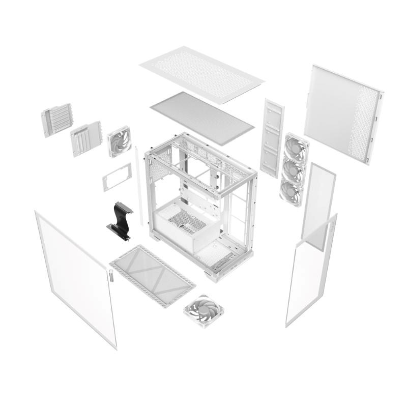 4 předinstalované 120mm ventilátory s převrácenými lopatkami určené pro nasávání vzduchu z boční a spodní strany systému. S elegantním designem a působivým osvětlením skříň INVADER X udržuje systém dostatečně chladný a navíc přitom parádně vypadá. Rozsáhlé testování ukázalo, že tato skříň optimalizuje účinnost chlazení, přičemž výrazně snižuje teplotu GPU a základní desky.