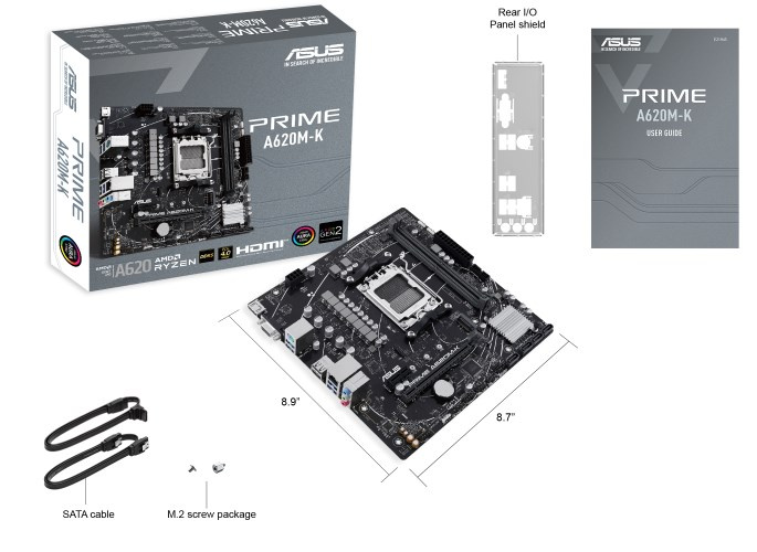 Popis BAZAR - ASUS MB Sc AM5 PRIME A620M-K, AMD A620, 2xDDR5, 1xHDMI, 1xVGA, mATX - Po opravě (Bez příslušenství)