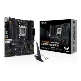 TUF GAMING A620M-PLUS is equipped with outstanding features, including 6-layer PCB design, DDR5 6400+(OC), Massive VRM Heatsink, PCIe 4.0 support, dual M.2 slots, Realtek 2.5Gb Ethernet, USB 3.2 Gen 1 ports, front USB 3.2 Gen 1 Type-C®, BIOS FlashBack™, 2 x DisplayPort, HDMI™, Addressable Gen 2 headers, Aura RGB header, Aura Sync, M.2 Q-Latch, Q-LED Core, ASUS OptiMem II, Fan Xpert 2+, Power Saving, Two-Way AI Noise Cancellation, Armoury Crate, ASUS TUF PROTECTION and SafeSlot Core+, which will bring users maximizing performance, stability and compatibility for the very best DIY PC experiences.
