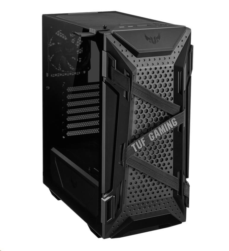 ASUS TUF Gaming GT301 ATX mid-tower compact case with tempered glass side panel, honeycomb front panel, 120mm AURA Addressable RGB fan, headphone hanger and 360mm radiator support.