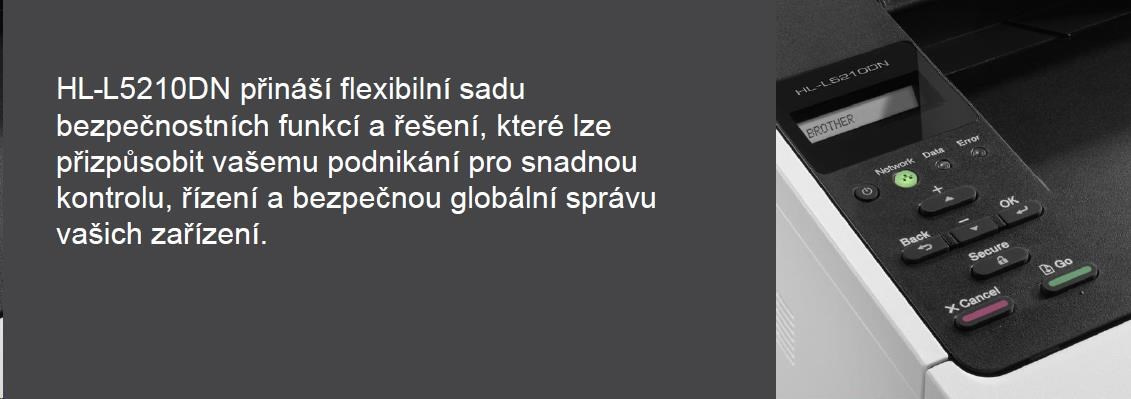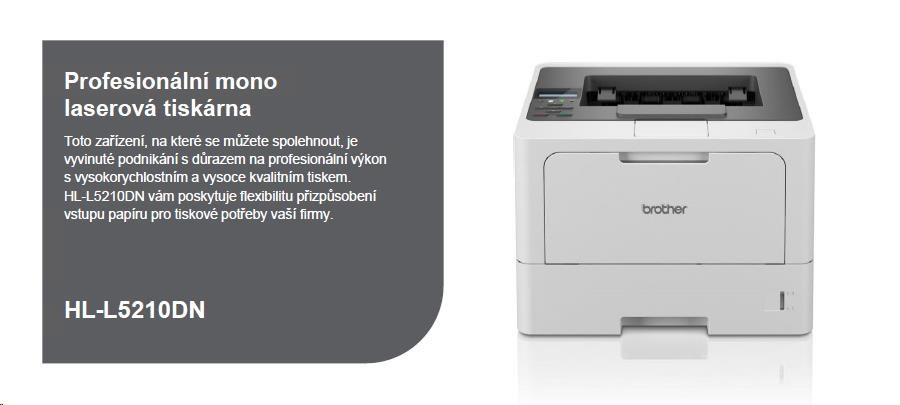 Popis BAZAR - BROTHER tiskárna laserová mono HL-L5215DN - A4 48ppm 1200x1200 256MB 250list LAN USB DUPLEX - Poškozený obal (Ko