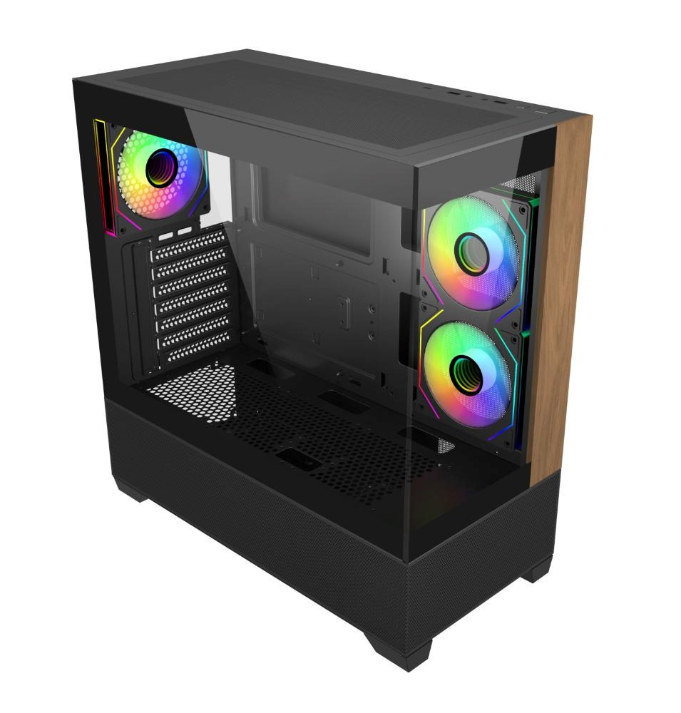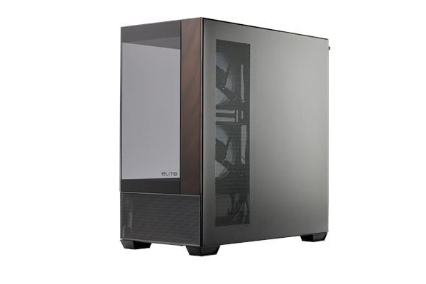 Popis BAZAR - Cooler Master case Elite 690 Wood, ATX, Průhledná bočnice, 3x 120mm ARGB Fan, Černá - Poškozený obal (Komplet)